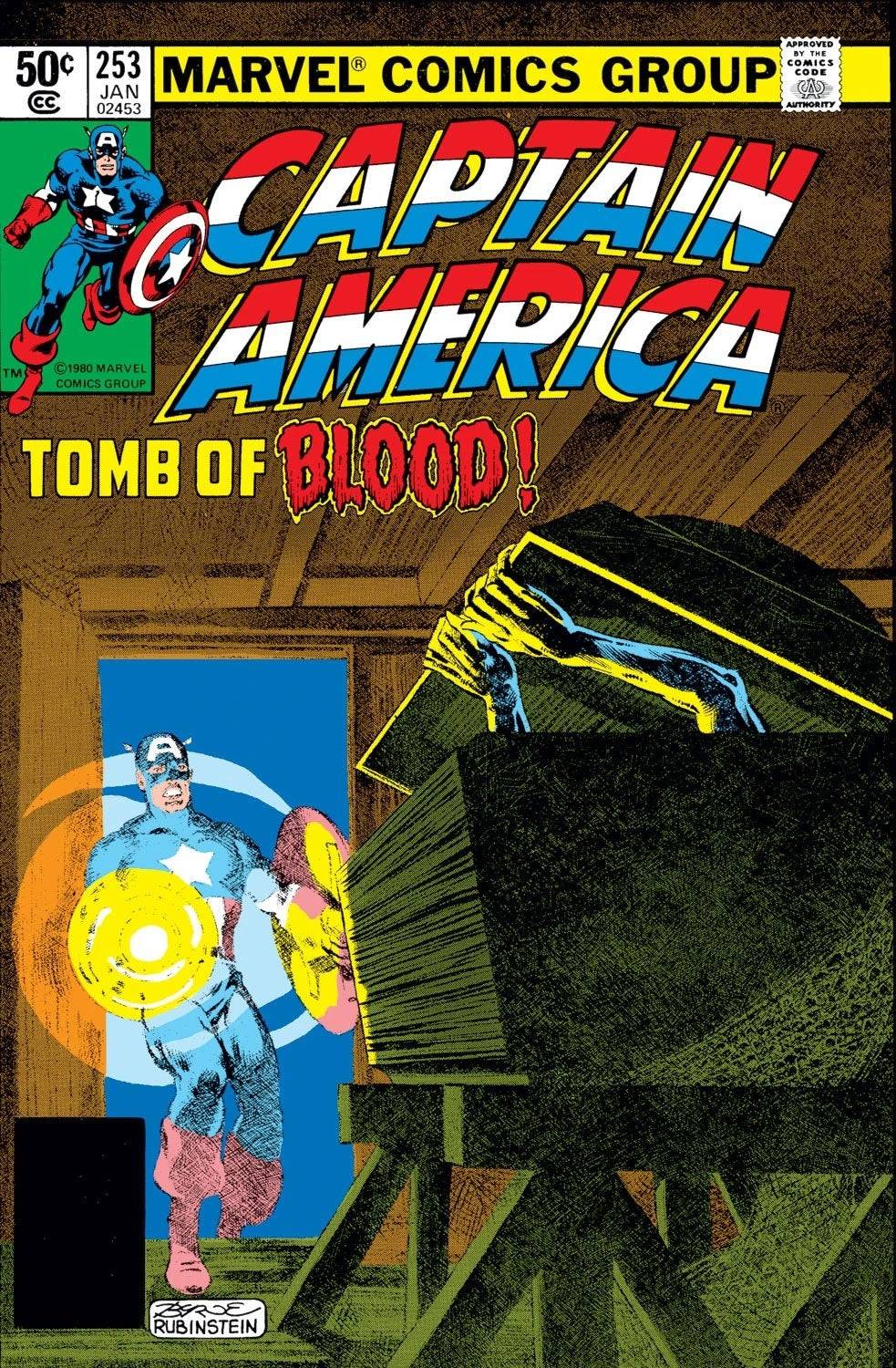 Captain America #253-254, par Roger Stern et John Byrne, livre un récit plus sombre où Cap combat Baron Blood, un vampire nazi lié à ses jours des Invaders pendant la Seconde Guerre mondiale. Cette histoire captivante, avec un art superbe et un climax brutal, se distingue comme un point fort de leur brève collaboration.